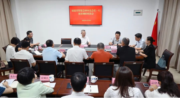 9月26日,省贸促会党组书记、会长钟木达一行来漳调研并召开座谈会。漳州市恒丽电子有限广发平台、漳州片仔癀药业股份有限广发平台、漳州市港昌工贸有限广发平台、漳州立达信光电子科技有限广发平台、福建安泰新能源科技有限广发平台等企业代表及市贸促会市管干部、各部(室)负责人,芗城区、龙文区、龙海区、长泰区贸促会负责人参加座谈。