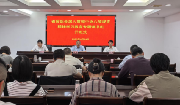 4月24日-25日,省贸促会举办深入贯彻中央八项规定精神学习教育读书班暨党组理论学习中心组(扩大)学习会。党组书记、会长徐敏作开班动员和总结讲话,会领导班子成员和全会党员、干部及老干部支部代表参加培训班。