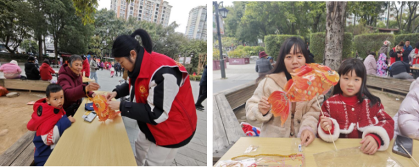 活动主会场内,十余张长桌围满亲子家庭与传统文化爱好者。在艺术老师和志愿者的共同指导下,大家都兴致勃勃地动手创作,孩子们用环保材料制作的新式卡通花灯与玲珑花灯相映成趣,无论是小朋友还是老年人,一盏盏独具特色的花灯在巧手中诞生。