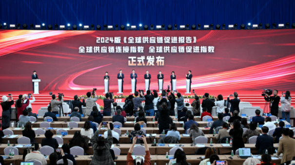 11月26日下午,第二届链博会主题活动—贸促智库交流活动暨“一报告两指数”发布会在京成功举办,会上首次发布2024版《全球供应链促进报告》、全球供应链促进指数,以及研究院与央视总台财经节目中心联合研发的全球供应链连接指数,中国贸促会会长任鸿斌出席发布会并致辞,为推动全球供应链的开放合作贡献链博智慧。