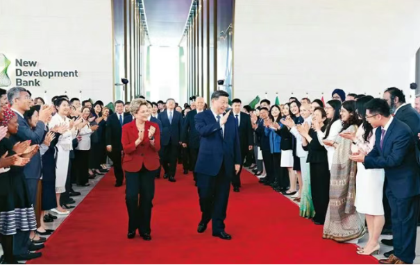 2025年4月29日上午,国家主席习近平在上海访问金砖国家新开发银行,并会见新开发银行行长罗塞芙。 新华社记者 黄敬文/摄