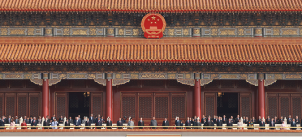 大会开始前,习近平和夫人彭丽媛在端门外广场迎接出席大会的外方代表团团长及其配偶,并同他们合影留念。