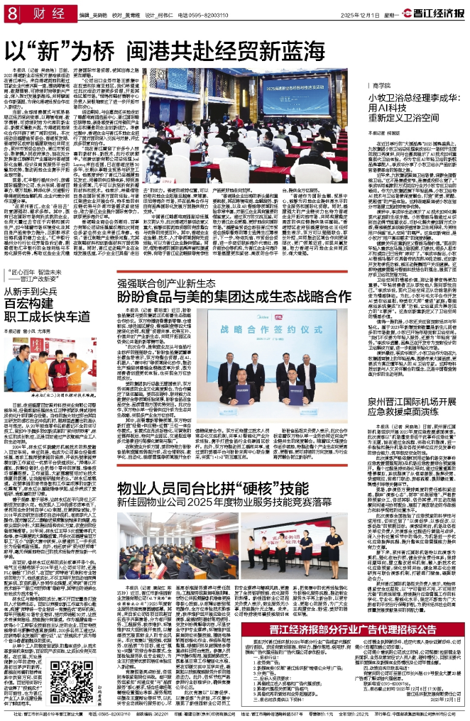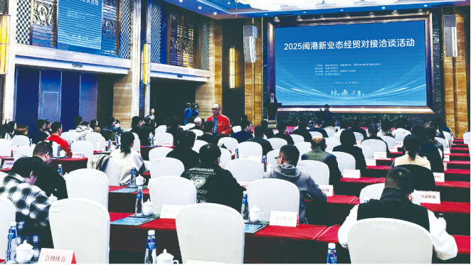 本报讯 (记者 吴晓艳) 日前,2025闽港新业态经贸对接洽谈活动在晋江举行。来自闽港两地的超过百家企业代表齐聚一堂,围绕跨境电商、数字营销、可持续时尚等新兴产业,深入探讨发展新路径,共同擘画合作新蓝图,为深化闽港经贸合作注入新活力。