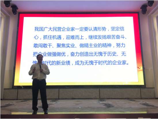 图:全国工商联原副主席庄聪生就中国民营经济的未来之路做演讲。