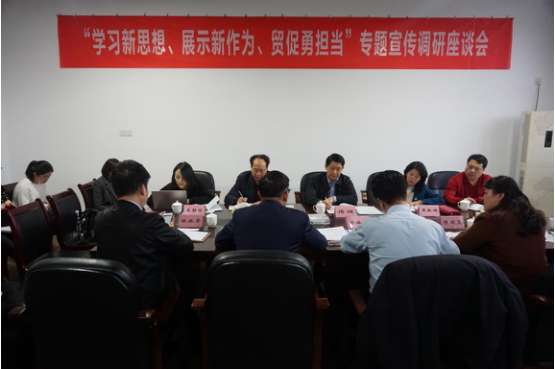 为贯彻落实中共福建省委关于在全省进一步兴起习近平新时代中国特色社会主义思想“大学习”热潮的通知要求,大力弘扬习近平总书记在福建工作时倡导的“四下基层”优良作风,持续推进“两学一做”教育活动,扎实开展“不忘初心、牢记使命”主题教育,更好谋划2019年度全省贸促工作。2018年11月,福建省贸促会组织开展了“学习新思想、展示新作为、贸促勇担当”专题宣传调研活动。福建省贸促会党组书记、会长陈震,党组成员、副会长傅健、谢续华、陈扬分率工作组赴9市(厦门除外),围绕“深入学习宣传习近平新时代中国特色社会主义思想和党的十九大精神,交流贸促系统党的政治建设、党风廉政建设情况;了解各级贸促会履职担当、服务中心工作的好经验;了解市县两级贸促会自身建设、商会工作等情况;收集2019年度工作建议和要求;与当地党政领导沟通,推进解决贸促会存在的问题”等五个方面重点内容进行专题宣传调研。