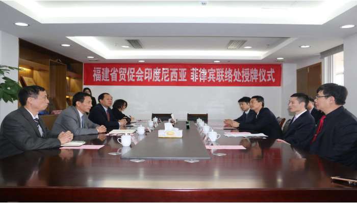 福建省贸促会印度尼西亚、菲律宾联络处于2017年12月28日授牌。福建省贸促会会长陈震、福建省贸促会副会长谢续华等出席了授牌仪式。授牌仪式由省贸促会副会长谢续华主持,由省贸促会会长陈震向中建海峡集团、菲律宾神舟矿业集团颁发了联络处铭牌。现场,省贸促会与中建海峡集团、菲律宾神舟矿业集团分别签订了协议书。