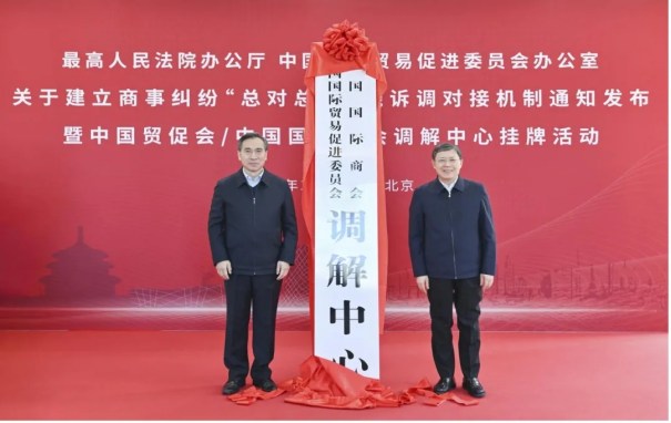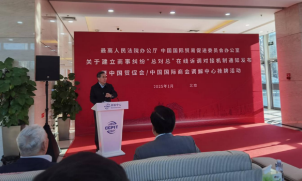 1月2日,最高人民法院办公厅与中国国际贸易促进委员会办公室关于建立商事纠纷“总对总”在线诉调对接机制通知发布暨中国贸促会/中国国际商会调解中心挂牌活动在京成功举办。中国贸促会会长任鸿斌、最高人民法院副院长茅仲华出席活动并致辞。中国贸促会副会长于健龙主持活动。我会杨立云副会长受邀出席活动。会上福建省贸促会被确定为十个“总对总”试点单位之一。