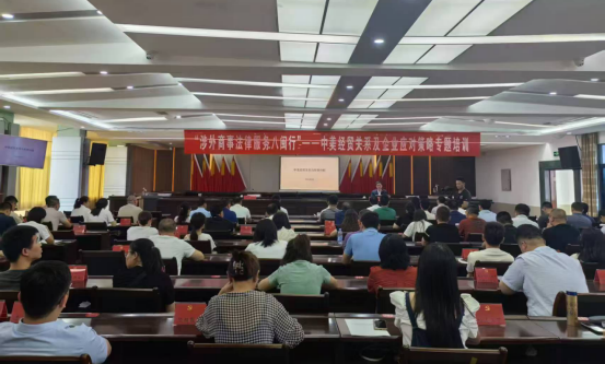 5月22日上午,由福建省贸促会主办的“涉外商事法律服务八闽行”——中美经贸关系及关税战应对策略专题培训在莆田涵江区举办。本次培训由莆田市贸促会、莆田国际商会、涵江区鞋服产业链联合协办,涵江区贸促会承办,旨在引导当地外向型企业积极应对美国滥施关税造成的负面影响,帮助企业正确看待中美贸易战及其影响,妥善化解经贸风险。莆田市贸促系统及涵江区企业代表等近百人参训。涵江区委常委、统战部部长曾曙光出席活动并致辞。