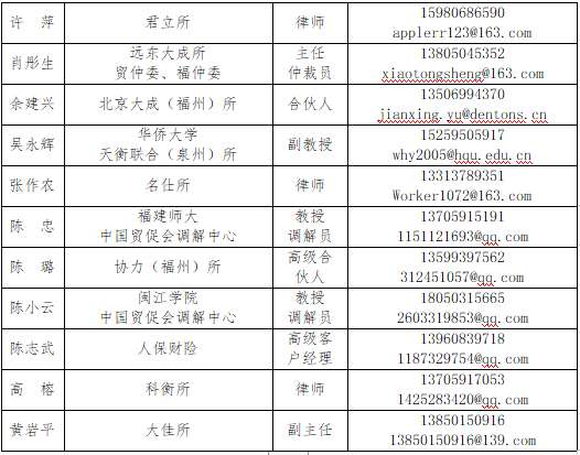 福建省贸促会法律支援平台专家团名单(按姓氏笔画)